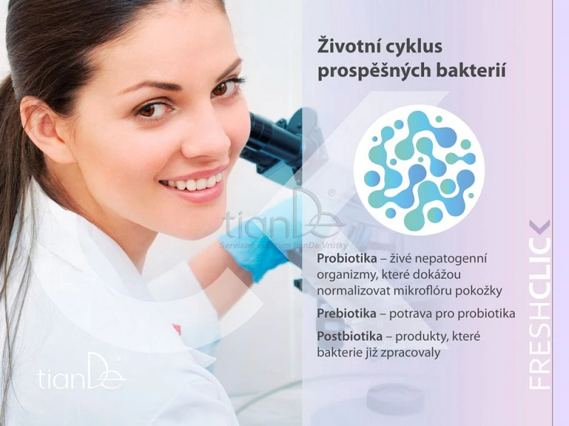 Prebiotický gél pre delikátnu starostlivosť z radu FreshClick je prípravok pre osobnú hygienu novej generácie s prírodnými prebiotikami a postbiotikami.