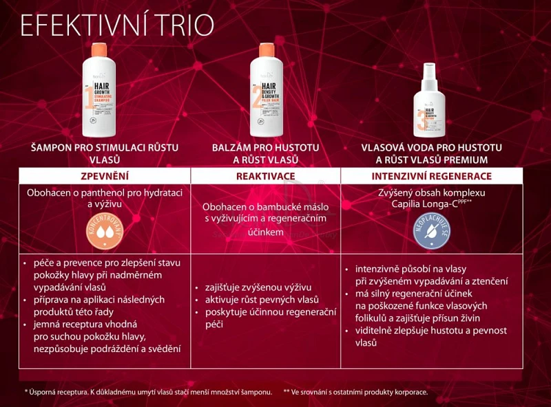 Pre maximálny účinok používajte šampón v kombinácii s balzam-fillerom a vlasovou vodou pre hustotu a rast vlasov."