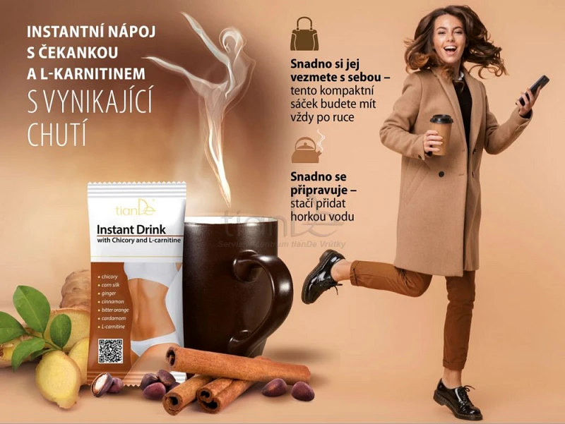 Instantný čakankový nápoj v kombinácii s L-karnitínom obsahuje okrem týchto dvoch účinných zložiek aj ďalšie SPAĽUJÚCE ZLOŽKY, ako napr. prášok z cédrových orieškov, inulín, výťažky z pomarančovníka a zázvoru, škoricu a kardamon.