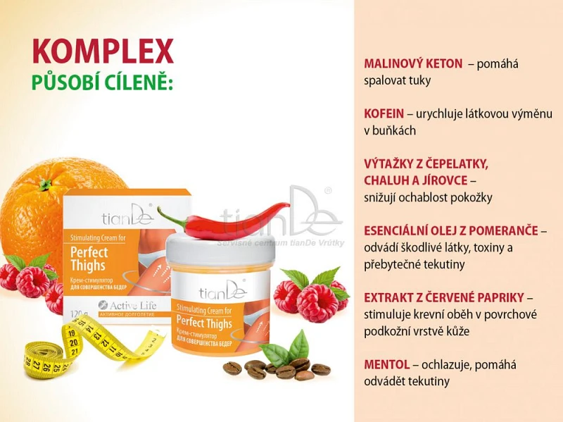 S touto úlohou sa výborne popasujú prírodné rastlinné zložky stimulujúceho krému pre dokonalé stehná od TianDe. Prípravok pôsobí cielene na pokožku a prispieva k dokonalej postave.