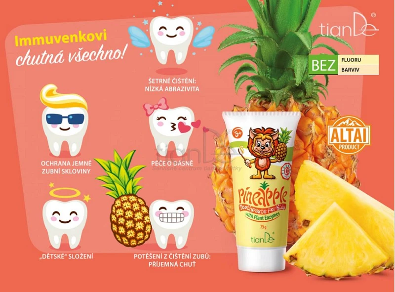 zubnou pastou Ananás zaisťuje dôkladnú hygienu ústnej dutiny, chráni zúbky a